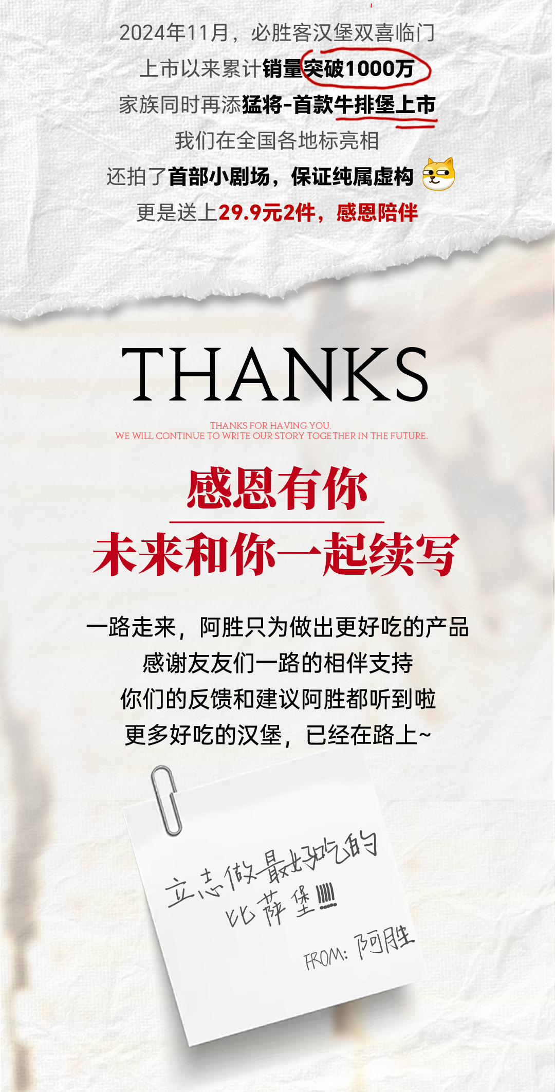 2024年4月22日至2024年11月17日期间,必胜客比萨堡产品累计共售出超过1000万个。