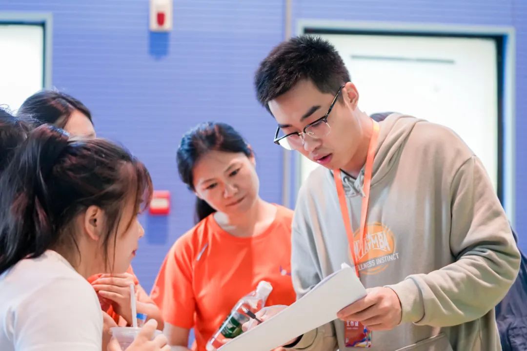 严谨的比赛使氛围变得紧张,而融合时刻的设置则是帮助大家缓冲紧张,回归到人与人的互动交流之中,会场内设置互动内容诸如羽毛球游戏,现场为球员送祝福、线上为球员们助力等活动。