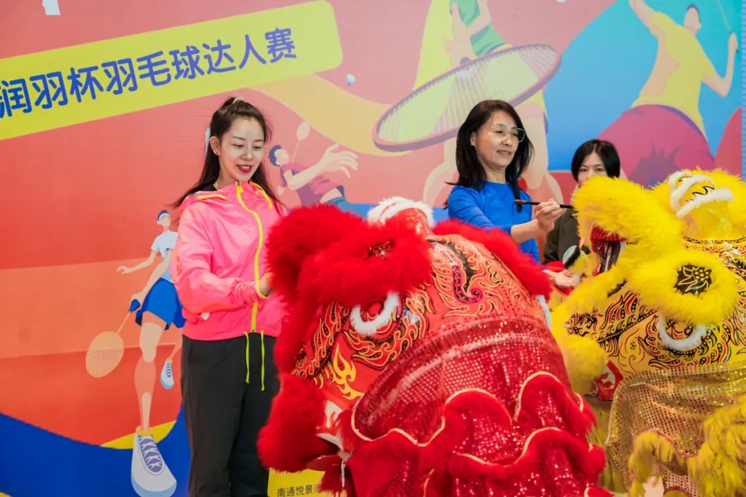 伴随明亮的锣鼓声,中华国粹舞狮表演震撼登场,由华润置地华东大区党委委员纪委书记王爽、华润置地华东大区客户关系部总监李倩稳步上前,亲执朱笔为祥狮点睛。热烈的掌声与欢呼声和激昂的鼓点声在球场高燃。