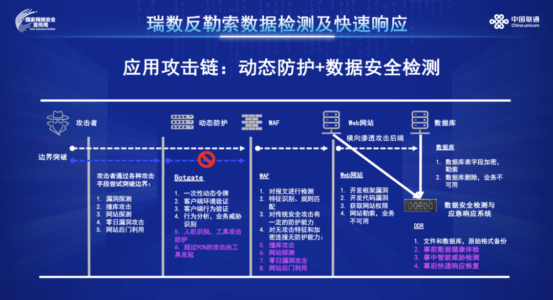 作为中国联通的生态合作伙伴,瑞数信息充分发挥自身技术优势,积极参与中国联通网络安全生态合作,推进网络安全产业的高质量发展。本次安全周,瑞数信息携反勒索数据检测及快速响应解决方案(River DDR)亮相博览会,受到业界高度关注。