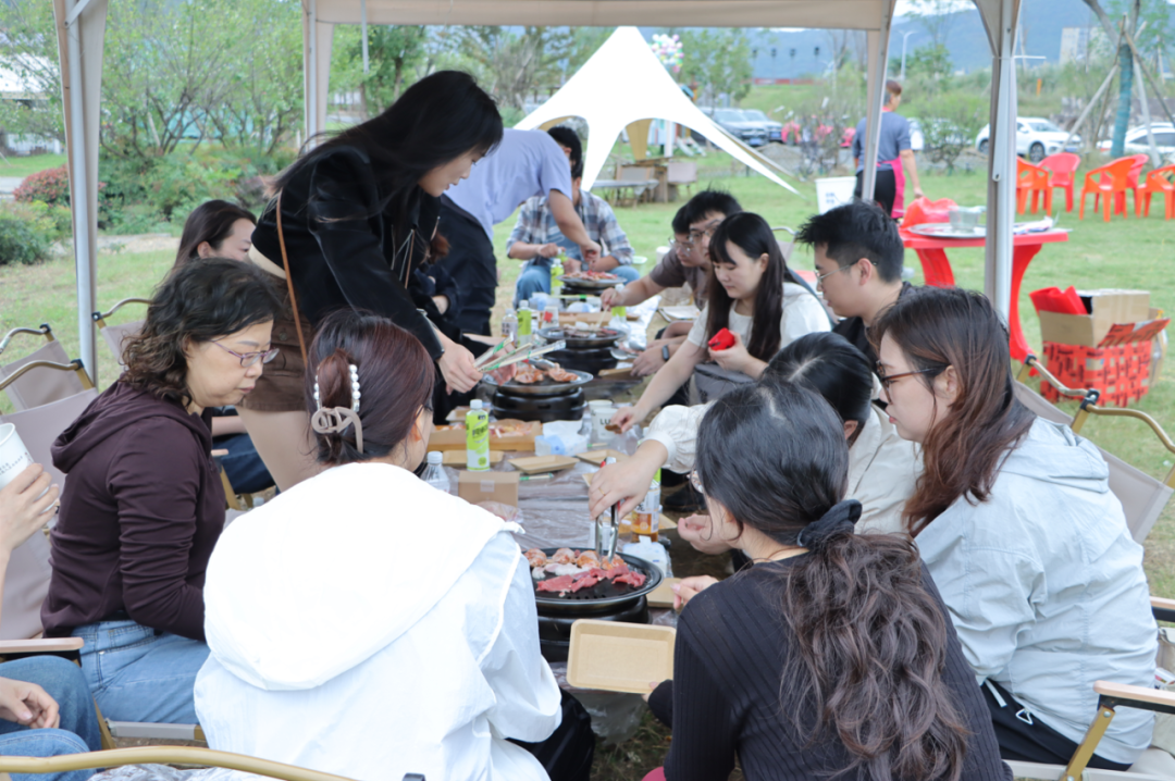 游戏过后,是丰富的自助烧烤,大家围炉而坐,互相分享美食。吃饭间隙,有人谈论着游戏中的精彩瞬间,有人分享着生活中的趣事,还有人则静静地聆听,在这样的氛围中,人与人之间的距离仿佛被拉近了许多,此刻,大家不再只是毫无交集的陌生同事,而是彼此倾听、相互理解的朋友。