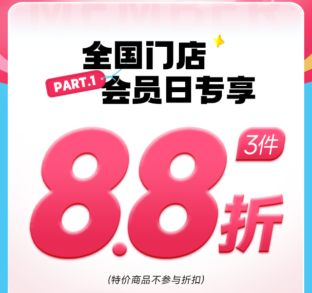 会员日狂欢 | 立享3件8.8折优惠!