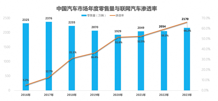 (智己L6搭载IMOS Powered by AliOS)2016年也是汽车智能化的启航年。乘联会数据显示,中国市场乘用车零售量保持在2000-2300万辆/年,而联网新车渗透率从2016年的5%左右,不断攀升,预计今年底将达到80%。整体来看,中国市场智能汽车存量约7000万辆。从智能车机到智能座舱,从上汽集团到大众集团,近几年,斑马智行累计合作30余个汽车品牌,落地车型超过700万辆,在存量智能汽车当中占比超过10%。