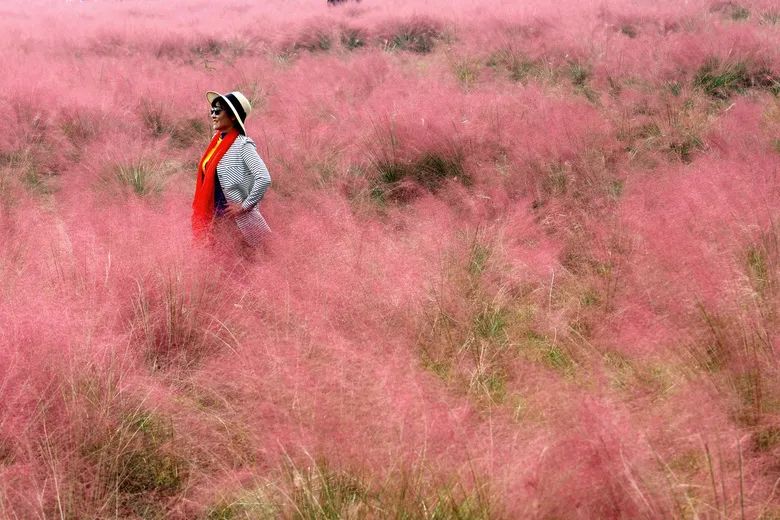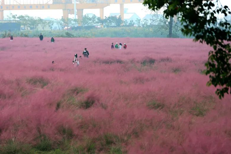 粉黛乱子草(学名:Muhlenbergia capillaris (Lam.) Trin.):多年生暖季型草本。绿色叶子覆盖下层,粉红色的花朵长出叶子。成片种植可呈现出粉色云雾海洋的壮观景色,景观可由9月份一直持续至11月中旬,观赏效果极佳。这是日前从萧山南江公园和义桥大桥边拍到的片子。