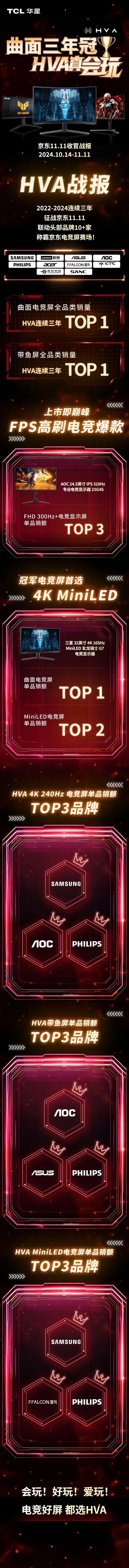 TCL华星电竞曲面三连冠!HVA称霸电竞赛场,京东11.11战报出炉