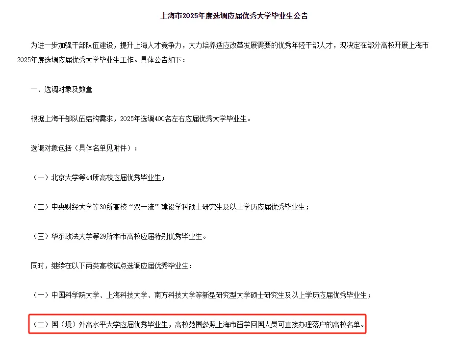 上海:留学生可以选调