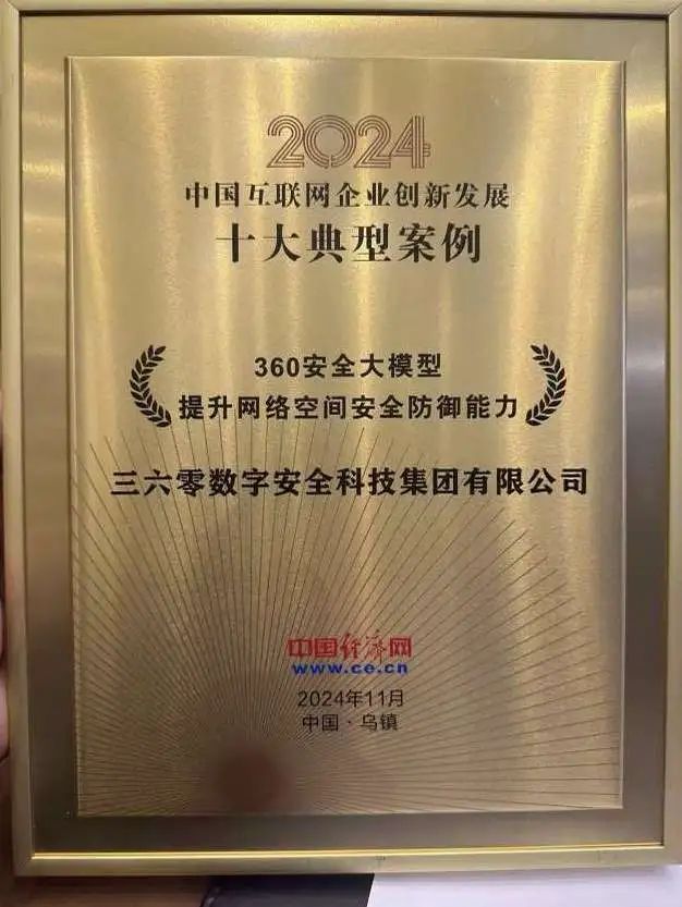 本次获奖是对360安全大模型技术创新和实践成效的高度肯定。此前,360安全大模型已荣获北京市科学技术进步奖等行业内外多项大奖。本次在乌镇再获两项标志性荣誉,进一步凸显了360集团在安全领域的行业领导地位。未来,360将坚持开展安全大模型赋能升级工作,持续打造安全新质生产力。
