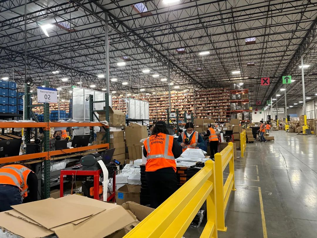 在该海外仓内,工作人员有条不紊地进行订单分拣和打包。智能化拣选系统通过实时数据分析优化作业流程,提高了整体作业效率。谷仓通过“仓中仓”的灵活配置,实现了3C产品从入库到出库的端到端全链路管理,确保每一件商品的一物一码校验,支持产品的精细化系统管理,匹配谷仓成熟的高货值及电池管理资源,支持多元化的出库场景,每一道操作均严格按照国际标准执行,为进军北美市场的3C卖家提供了坚实可靠的物流支持。