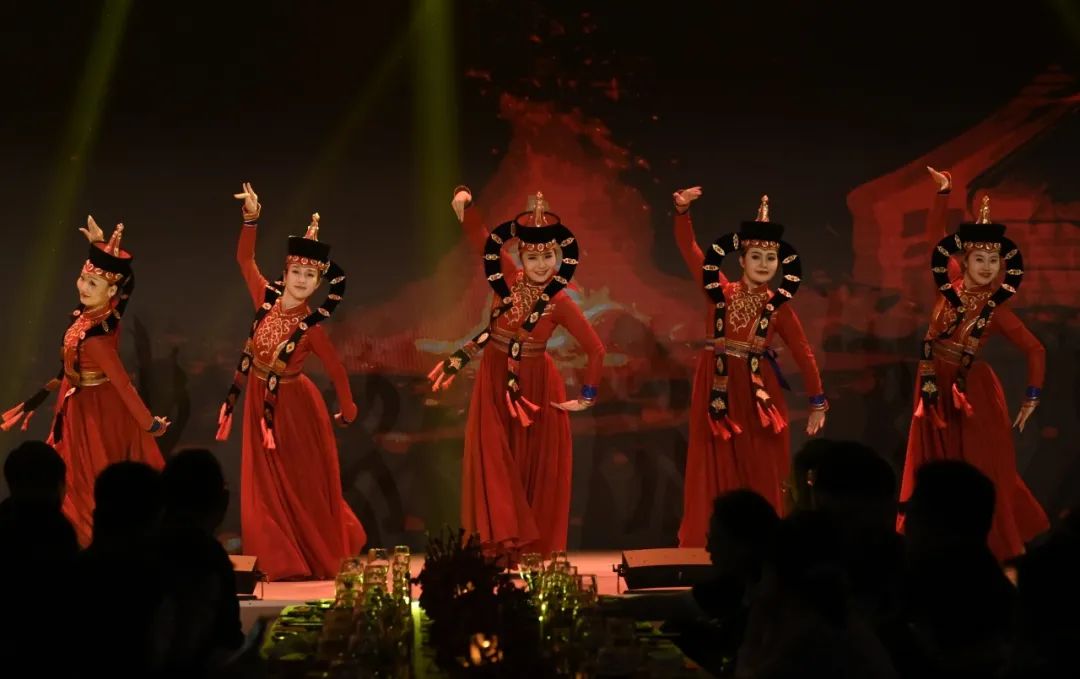 由于去年北疆采风留下了伏笔, 今年的云中舞台迎来了别具一格的蒙古族舞蹈——“萨吾尔登”的惊艳亮相。与内蒙古蒙古族舞蹈的豪迈粗犷不同,新疆蒙古族舞蹈“萨吾尔登”以其灵动柔美而独树一帜,这是一种以马为主题、允许舞者自由发挥的舞蹈艺术。在传统弹拨乐器托布秀尔的悠扬旋律中,萨吾尔登通过肩、臂、腕、手的细腻协调动作,深情地传达了天山脚下蒙古族人民内心的喜悦与欢畅,为观众呈现了一场视觉与情感的双重盛宴。