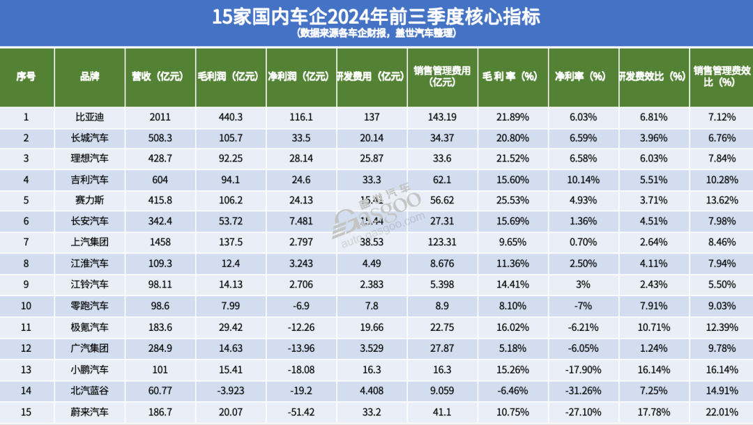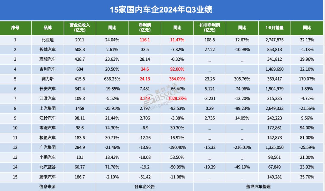 国内车企Q3财报:盈利大洗牌,民营占据前五席