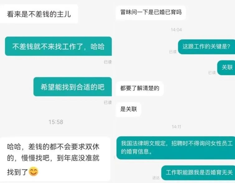 有人发帖,说自己找工作的时候问了一句有没有双休,然后被HR怒怼“差钱的都不会要求双休”。