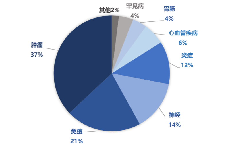 图. AI制药参与的临床适应症分布