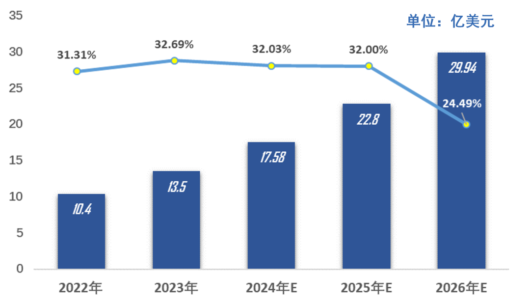 图.2022年-2026年全球AI制药市场规模及增速