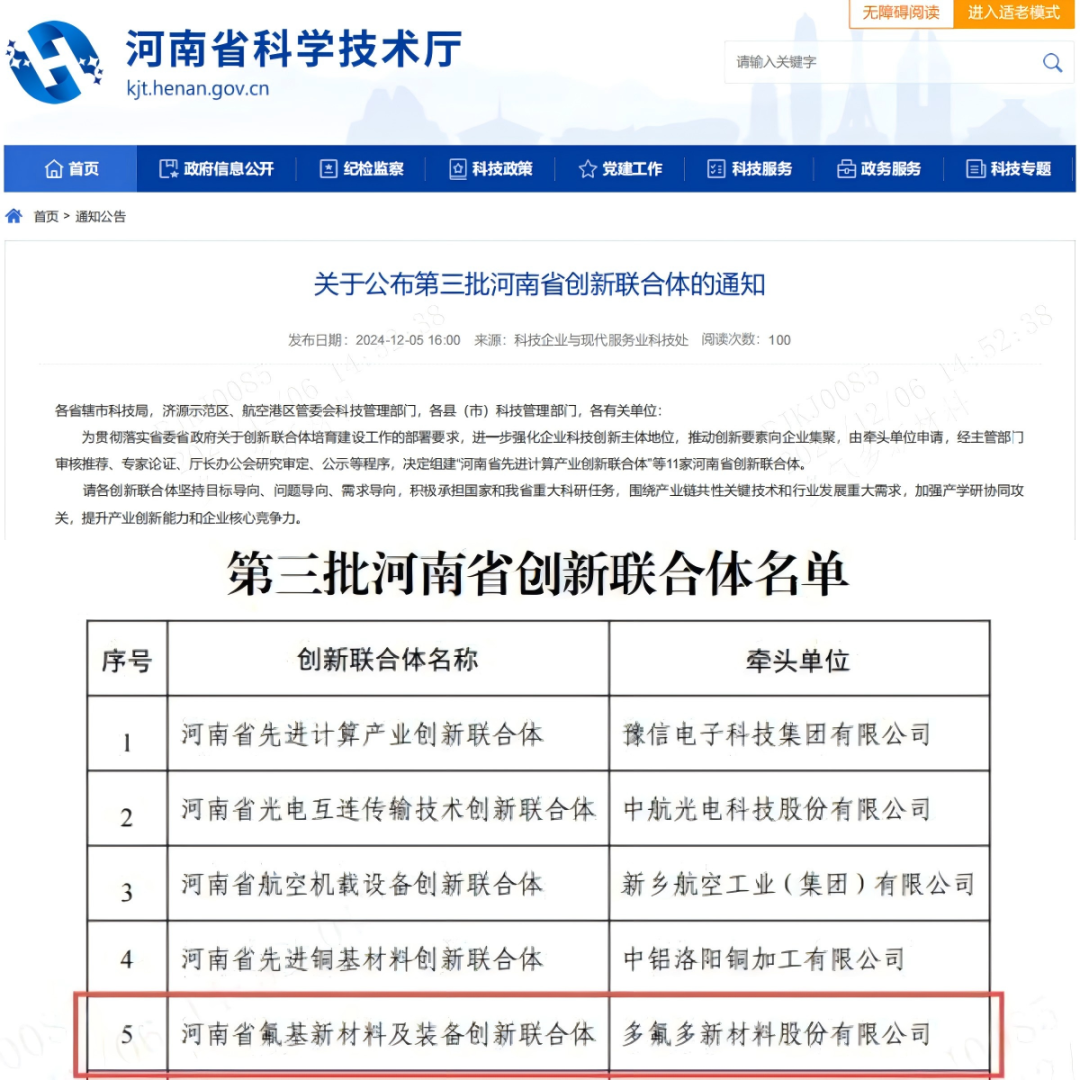 为进一步强化企业科技创新主体地位,推动创新要素向企业集聚。12月5日,河南省科技厅正式发布了《关于公布第三批河南省创新联合体的通知》,经主管部门审核推荐、专家论证、厅长办公会研究审定、公示等程序,决定组建11家河南省创新联合体,多氟多牵头组建的“河南省氟基新材料及装备创新联合体”名列其中。