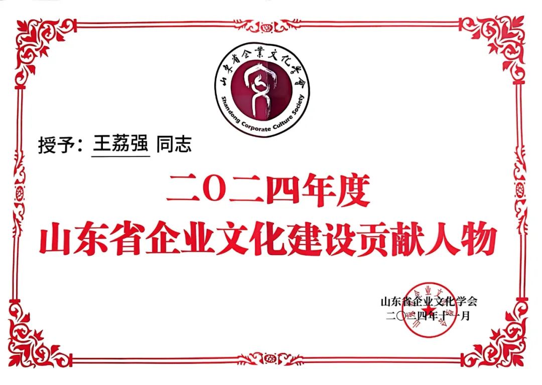 近日,山东省企业文化建设发展大会在青岛市隆重召开。会上,我公司因在推动荣昌特色企业文化建设方面的突出成就而被授予三项大奖,分别是《中华优秀传统文化为核心锻造企业文化品牌》荣获企业文化建设发展大会组委会所颁“新时代企业文化建设优秀成果”(全国性奖项),《传千年齐文化精髓 铸荣昌文化长青基因》荣获山东省企业文化学会二0二四年度“山东省企业文化建设优秀成果”,王荔强董事长荣获山东省企业文化学会二0二四年度“山东省企业文化建设贡献人物”称号。