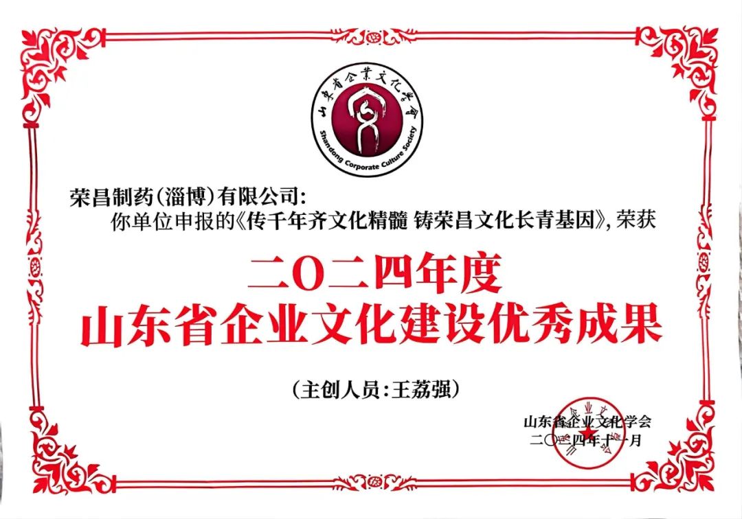 自公司创建以来,在王荔强董事长大力倡导和积极推动下,我公司全面落实文化兴企战略,立足齐文化发祥热土,对接国药文化精髓,与时俱进,推陈出新,企业文化建设成果丰硕,生动地践行了荣昌特色医药现代化发展理念,走出了企业文化建设与公司高质量发展相融相济、和谐共生的荣昌“文化之路”。