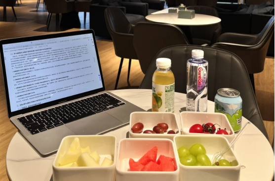 既有现磨咖啡,又有不限量的时令水果,还提供安静的隔间。