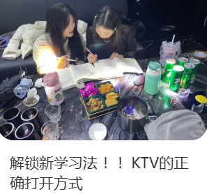 还有些精神状态超前的同学,白天包场KTV,在闪耀灯球下,放声背诵知识点;