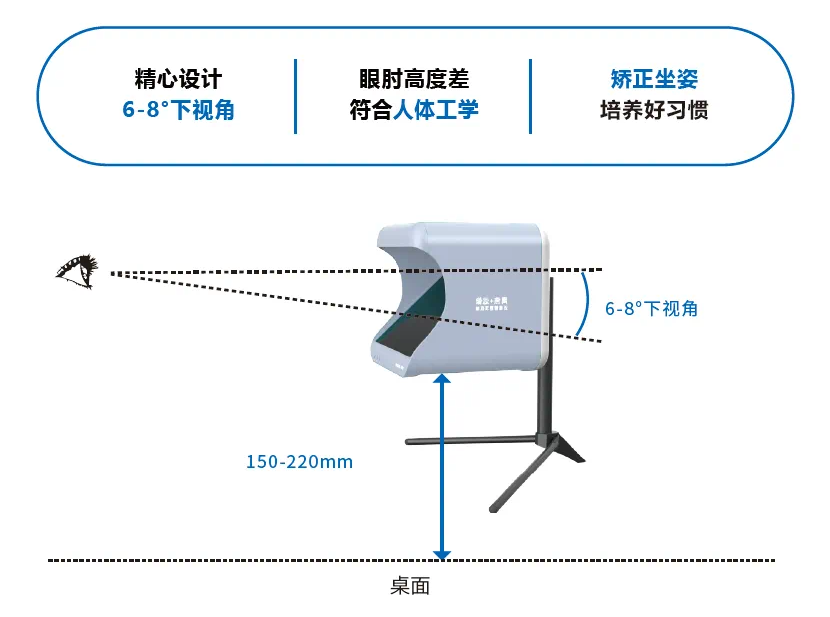 为什么是6-8°?因为孩子在看书的时候,眼睛自然地往下看时的角度大概就是6-8°。这个角度符合身体的自然曲线和习惯,让孩子在看书时不需要低头太多,从而减少颈椎的压力;同时也能够让孩子自然而然地坐直,从而矫正不良坐姿。远像+双离焦读写台的“创新之处”,不仅在于对视力的保护,更在于它的易用性和普及性。无论是家庭书房、学校教室,还是办公场所,都可胜任。对于学生而言,它是学习路上的得力助手,帮助孩子们在保护视力的同时,更加高效地吸收知识;对于家长而言,它是帮助孩子矫正坐姿和预防近视的必备之选,让家长放心、省心。爱络博远像+双离焦读写台,它不仅仅是一款产品,更是我们关爱孩子视力健康、促进健康成长的诚挚承诺。选择爱络博远像+双离焦读写台,就是选择了科学、健康、高效的视力管理方案,共同为孩子的明亮未来保驾护航。