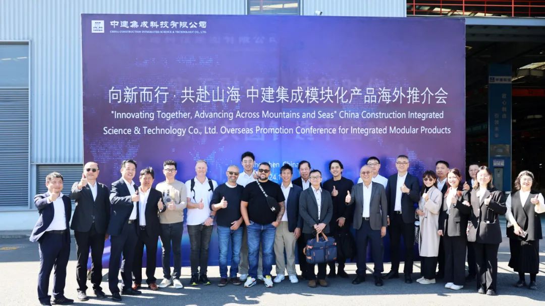 11月28日,中建集成科技有限公司在深汕特别合作区成功举办了以“向新而行,共赴山海”为主题的模块化产品海外推介会。此次活动旨在展示中建集成在模块化建筑领域的创新成果,探讨模块化建筑在全球市场的应用前景,并推动与海外客户的深度交流与合作。来自澳大利亚、日本、新加坡、加拿大等多个国家的合作伙伴、投资商、专业技术顾问受邀参加会议;中建集成党委书记、董事长张健飞,设计总监李志武出席此次活动。