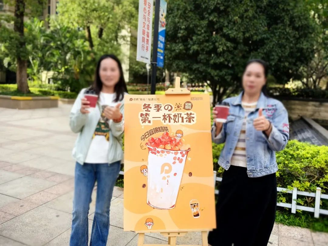 随着冬季的来临,气温逐渐降低,福建公司各项目纷纷开展立冬的第一杯奶茶,小雪暖心姜茶活动,只为给业主带去冬天的第一份温暖,增强业主的幸福感和归属感。