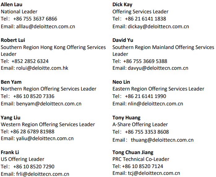 For details of the Capital Market Services Group's upcoming activities, please contact our program management team: Bonita Chan, Senior Manager (+852 2852 1679; bonchan@deloitte.com.hk), or Dora Yu, Manager, (+86 21 6141 1478; doryu@deloittecn.com.cn).
