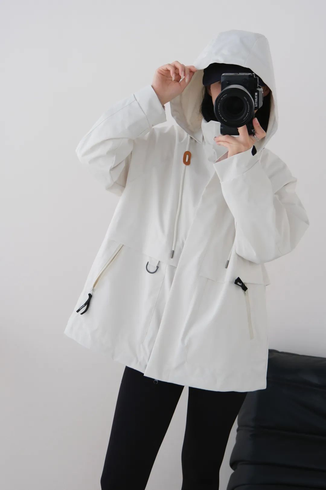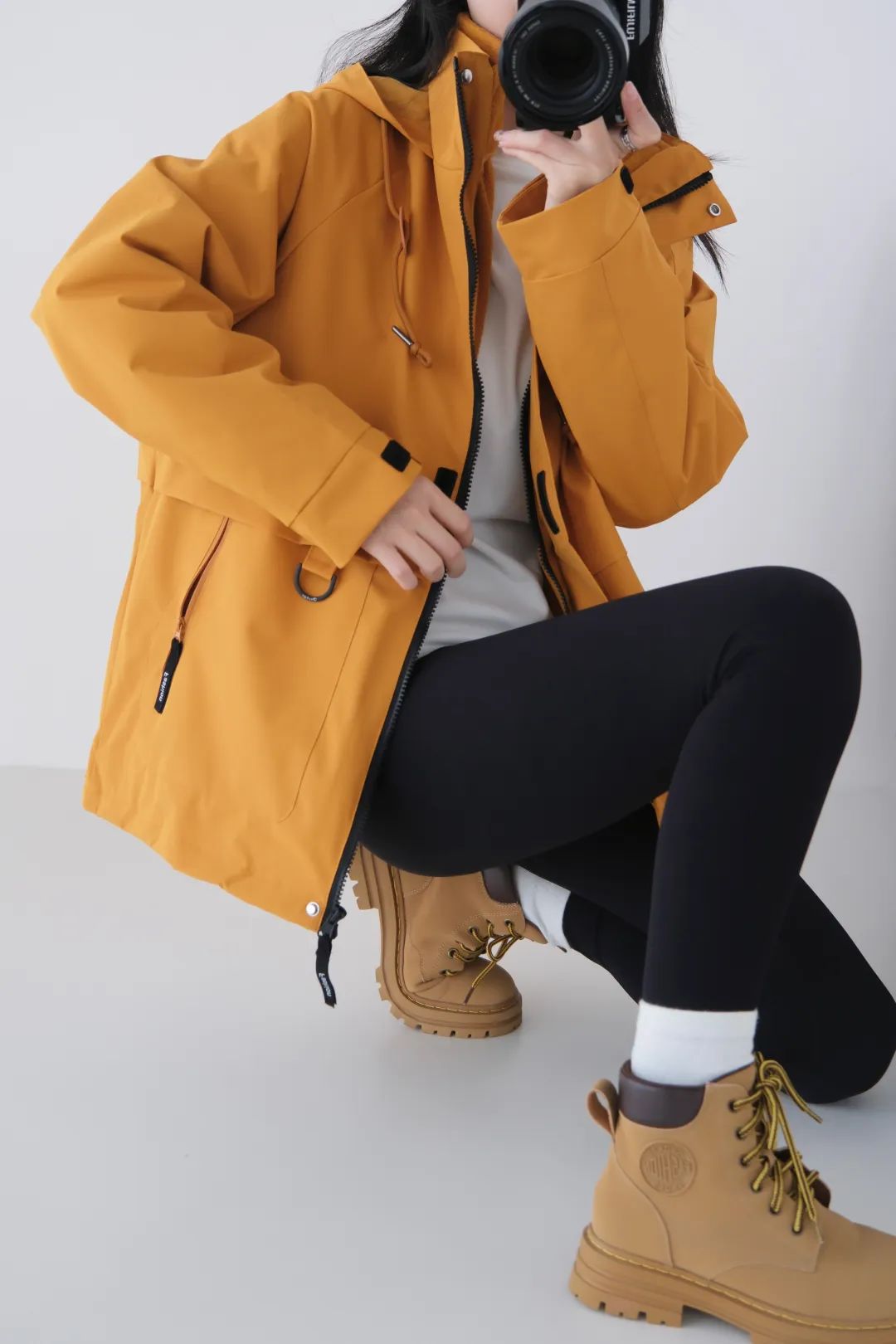 虽然是三合一设计,但不会显得很臃胖,上身不会很有负重感,轻盈又自在~~既不怕下雨打湿,也不会闷热很透。