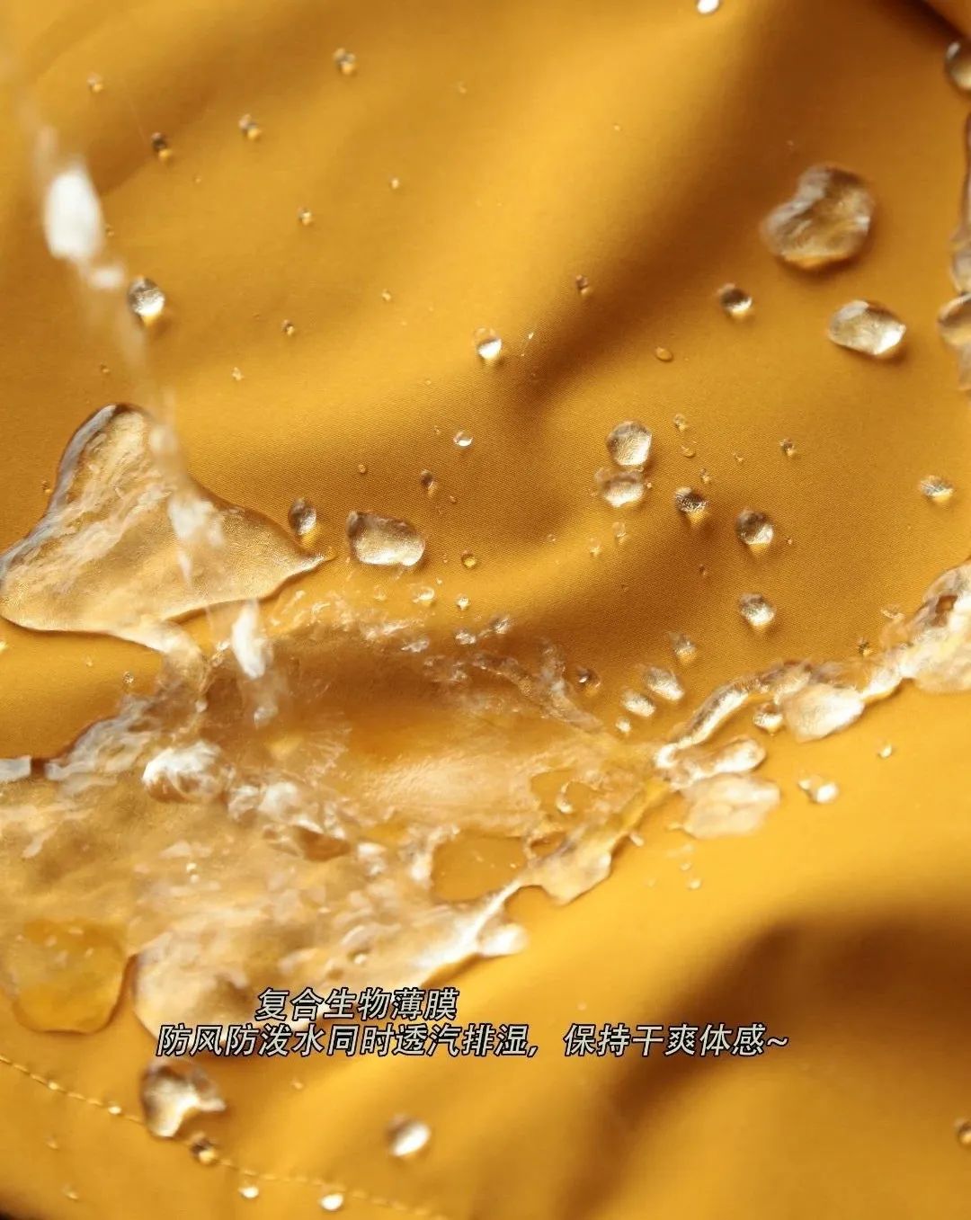 「聚醋梭织硬壳」非常轻盈柔和,不厚重不压身,同时具备户外的防护性能❗