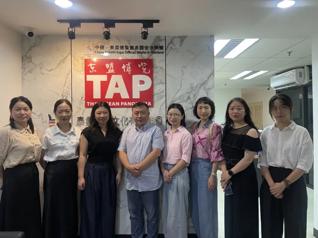 在泰鼎东盟文化传媒有限公司交流学习期间,众信代表团受到了项目经理杜晶的热情接待,泰南荣集团董事长THEPARAK LEUNGSUWAN,以及泰鼎东盟文化传媒有限公司董事、总经理陈晓丹在线上参与会议。