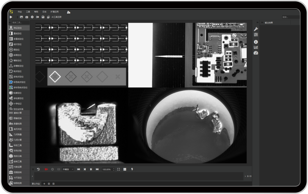 IntelliBlinkTM:一个自主研发的通用视觉检测平台。可以快速高效构建机器视觉解决方案,简化机器视觉系统实现的复杂度。用户无需编写任何代码,只需通过算法工具进行组合,实现各种读码、分类、定位测量等任务。
