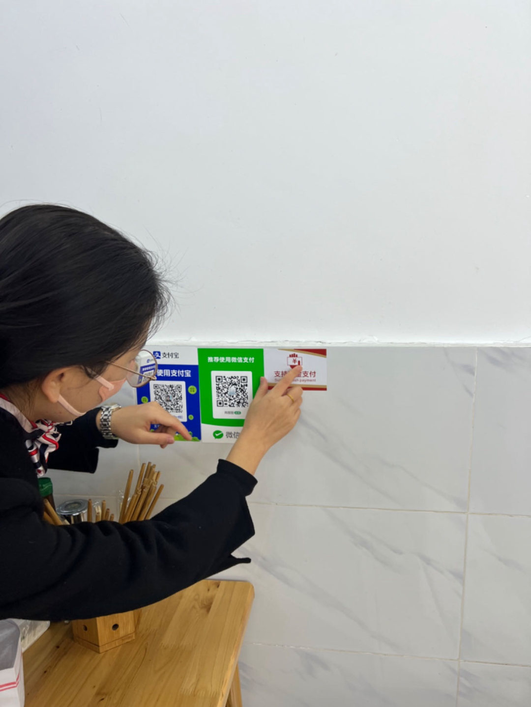在派发“零钱包”的同时,积极引导商户签订“不拒收人民币现金承诺书”,在收银柜台张贴“支持现金支付标识”。