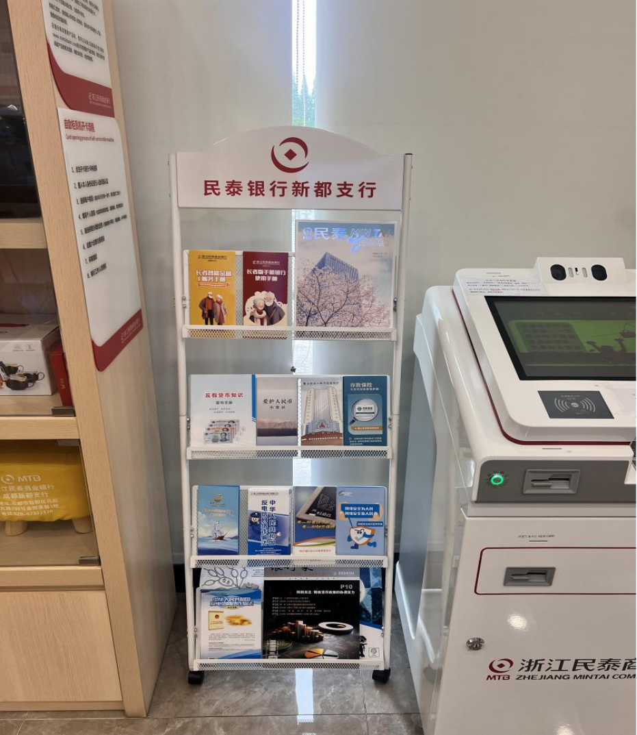 民泰银行成都分行在营业网点内摆放人民币宣传折页,营造便民用现良好氛围。根据客户对币种和数量的不同需求,民泰银行成都分行为其配置专属“零钱包”满足其个性化需求。