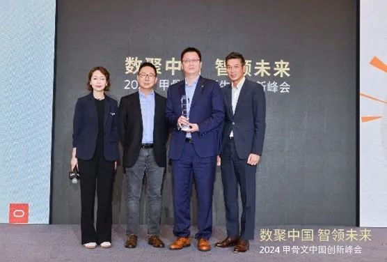 德勤中国甲骨文联盟主管合伙人、德勤中国咨询业务甲骨文服务全国主管合伙人刘俊龙(右二)上台领奖。(图片来源:甲骨文)