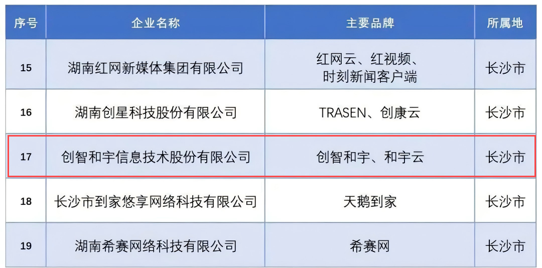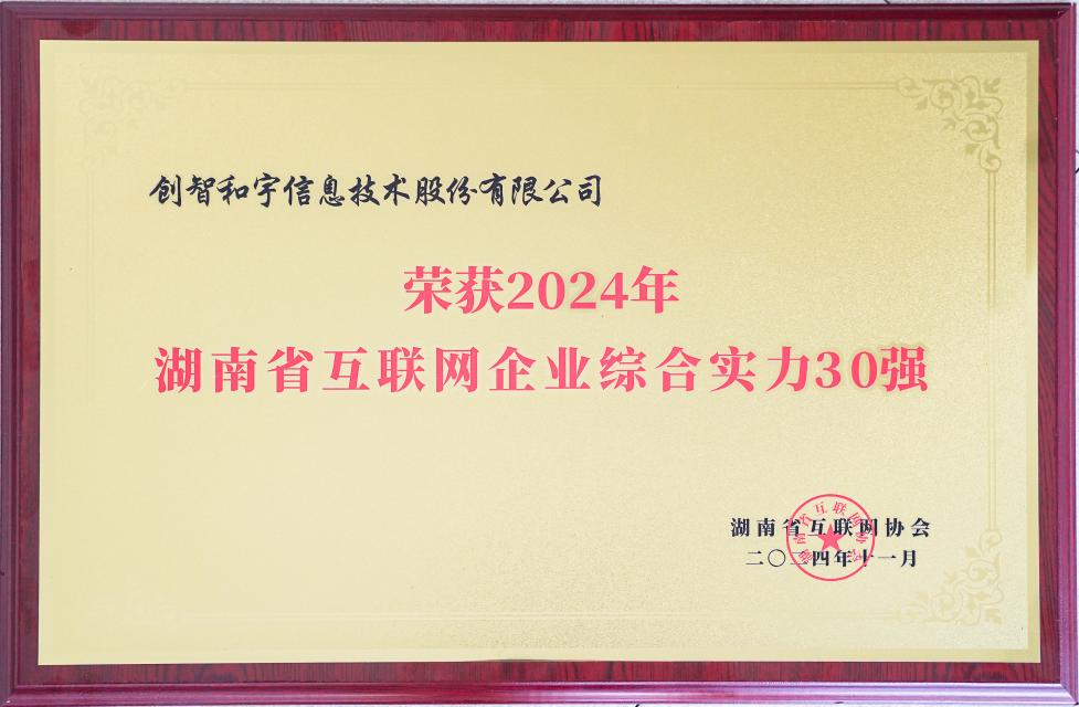 喜讯丨创智和宇获评2024年湖南省互联网企业综合实力30强