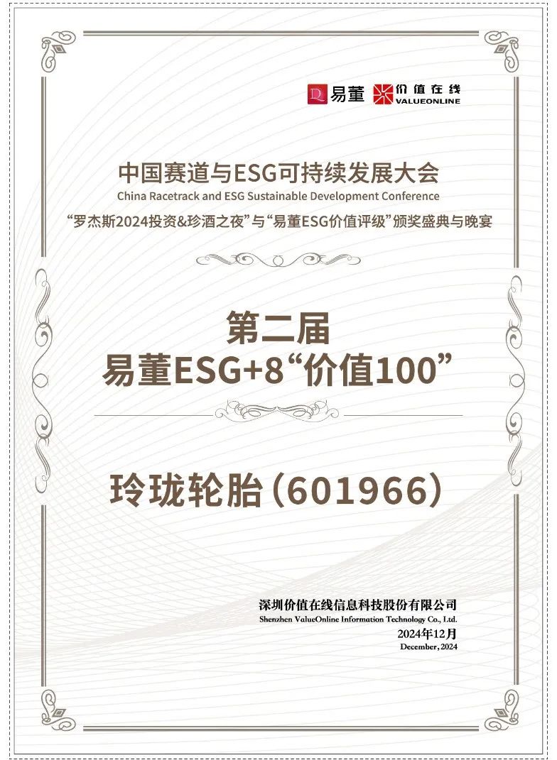 行业唯一!玲珑轮胎入围易董ESG+8“价值100”榜单