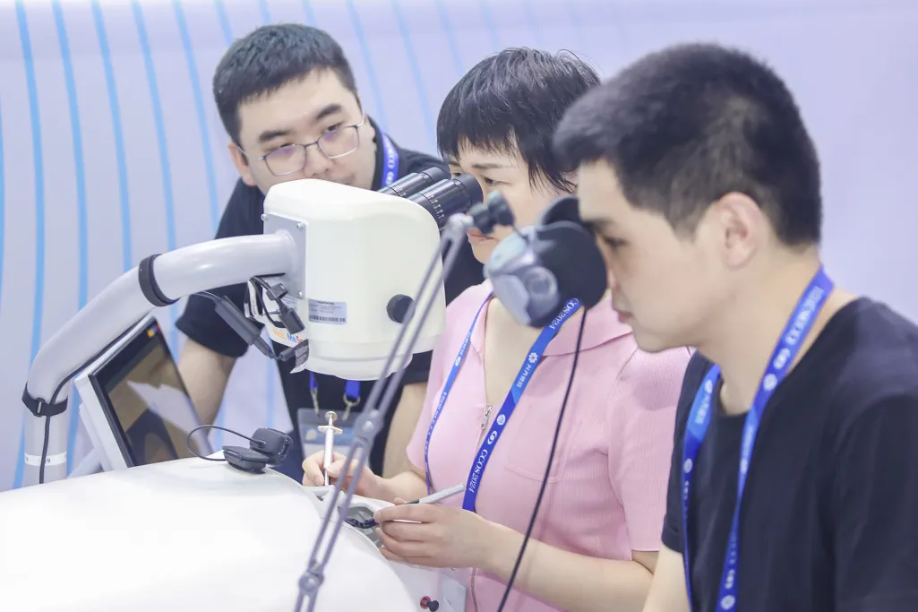 本次大会,在何氏眼科展台,何氏眼科国际培训学院与国际防盲机构HelpMeSee联合推出超声乳化手术模拟培训课程吸引众多参观者的目光。逼真的模拟手术训练,视、听、触全保真沉浸式临床技能培训体验。具有丰富临床经验的眼科专家一对一实践指导,确保学员高效掌握所需技能,为参观者带来了一场沉浸式互动培训技术分享盛宴,来自全国各地的眼科医生来到何氏眼科展台参与体验。