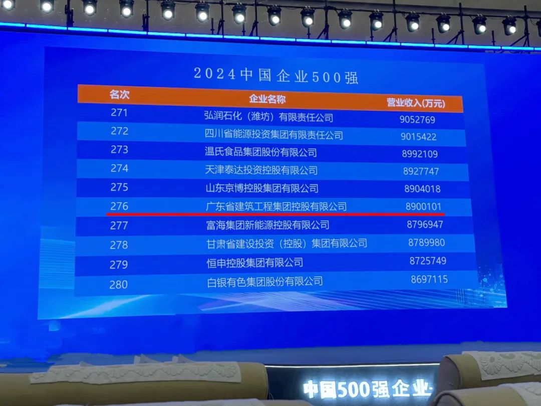 9月11日,中国企业联合会、中国企业家协会在天津发布2024中国企业500强等各项榜单。广东建工控股以营业收入890亿元位列“2024中国企业500强”第276位,同时荣登“2024中国战略性新兴产业领军企业100强”第73位。