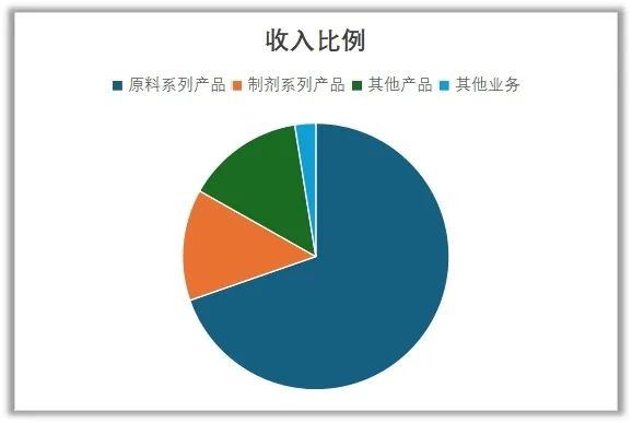 广济药业公司产品主要可以分为原料系列产品和制剂系列产品两大类,在两类上均有着丰富的产品线和较强的市场竞争力。2024年中期,公司原料系列产品营业收入为2.07亿,所占收入比例近70%,是广济药业名不副实的业绩大动脉,各产品类型营业收入所占比例,见下图。