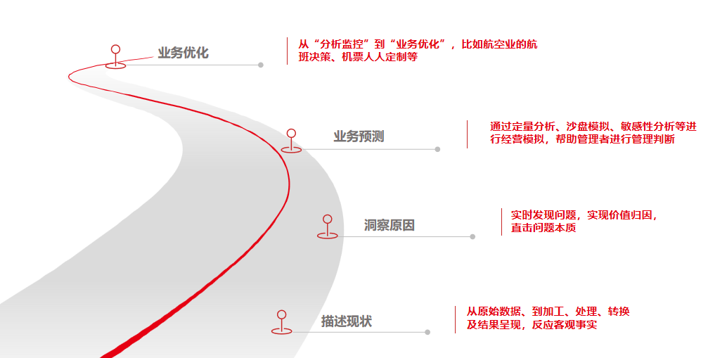 各个层面对管理报告的解决方案以及数字化应用都提出了较高的要求,从最基础的描述现状,到发现问题、直击问题本质的原因洞察,再到各种模型、模拟以辅助业务决策,以至数据赋能的业务优化,深度发挥数据价值,赋能企业管理会计创新应用。