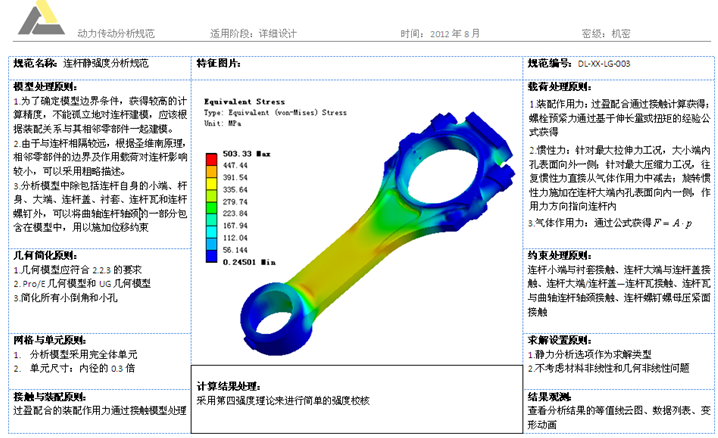 相同零部件的同类仿真分析在不同设计阶段的分析目的不同,因此,采用的技术、工具、仿真模型、网格的处理方式、结果的处理与评价等也各不相同。