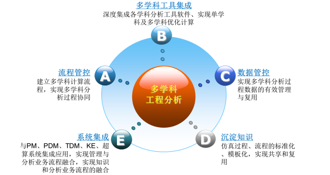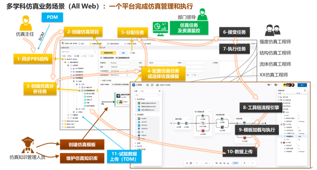 协同并监控多学科仿真过程,方便多部门、多学科的仿真专业人员和仿真工具的配合工作。