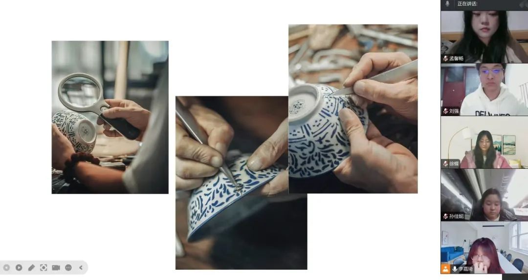通过主讲人孟馨畅的讲解,同学们被锔瓷背后的文化底蕴所吸引,了解到锔瓷有家族传承、师徒传承、社会传承、影像记录与网络传播四种传承方式。锔瓷不仅是民间绝活,更是中华民族精神寄托,是研究民间技艺、经济、文化的活化石。杨雨辰、王振海、杨涛作为主要传承人,并为锔瓷的传承作出了重要的贡献。