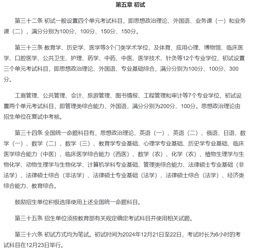 ✅初试(总分500分,具体内容要看各院校招生简章)