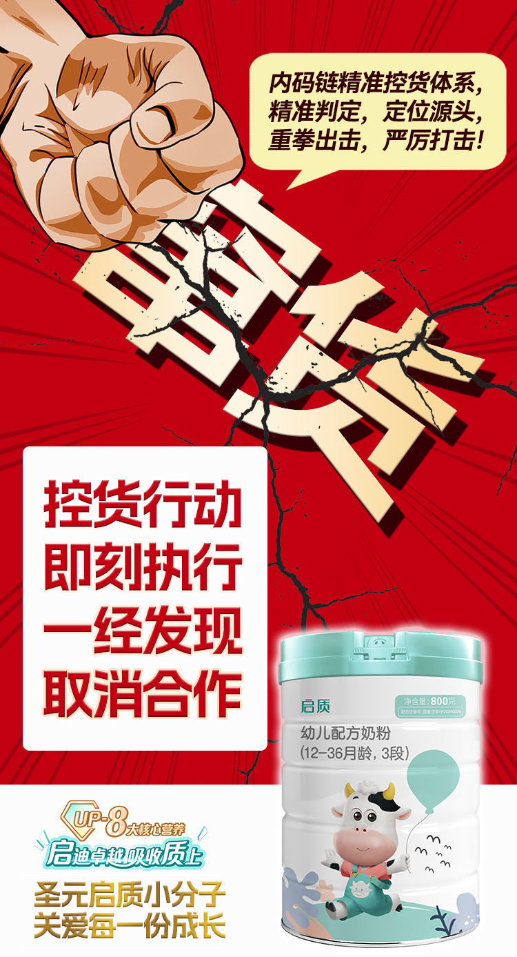 启质自上市以来,圣元爱系列品牌运营中心严格遵循集团控区控价控货市场原则,携手圣元集团共同维护市场秩序监督和管理。