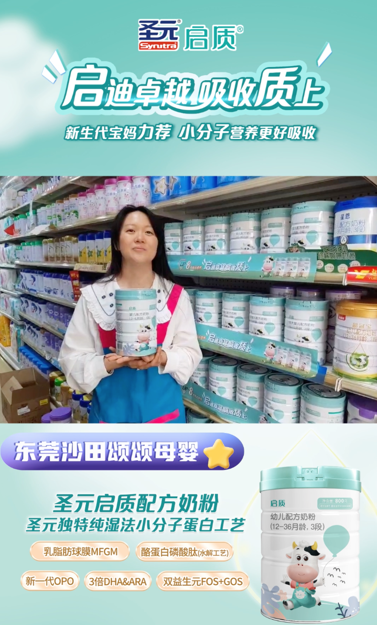 圣元启质依托于集团全产业链的先进优势,从奶源、工艺、生产、配方上,以母乳营养研究为基础,采用圣元独特纯湿法小分子蛋白工艺,保持奶源的新鲜、留存源乳的最大化营养,保障每一滴启质配方奶的营养品质。