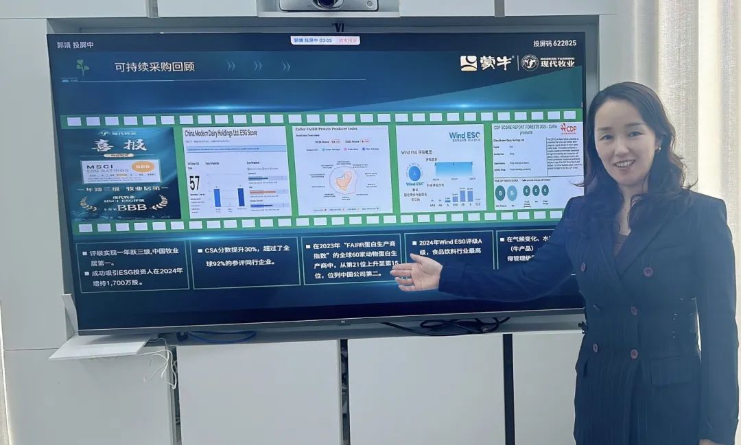 在会议期间,现代牧业就其可持续发展策略及合作前景进行了阐述。展望未来,现代牧业与各合作伙伴之间可持续合作关系将成为商业合作的核心。双方将致力于减少环境污染,节约水资源和能源,降低温室气体排放,保护森林资源,关注奶牛的健康状况,以及确保原奶的质量与安全。在社会责任方面,现代牧业及其合作伙伴将更加重视员工的福利与权益保护,确保整个产业链的劳动条件达到道德标准,并致力于为全球可持续发展目标作出贡献,共同营造一个更加环保、公正和繁荣的商业环境。