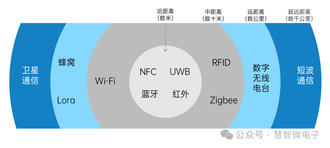 随着无线电通信技术的日益成熟,其应用范围也迅速拓展。20世纪初,无线电报在海上通信中崭露头角,极大地提升了航海的安全性和效率。随后,广播技术的横空出世,更是让无线通信走进了寻常百姓家,成为人们获取新闻、娱乐等重要信息不可或缺的渠道。如今,无线通信技术已经取得了长足的发展,其在人类生活中的应用也愈发广泛。从仅覆盖几米的蓝牙耳机,到能覆盖几百米的无线局域网;从连接几公里基站的手机通信,到实现数万公里跨洋通信的卫星技术,无线通信已经深深渗透到人们生活的方方面面,成为现代社会不可或缺的一部分。尽管都是依托射频技术实现通信,但不同的无线通信技术在其发展路径和技术思路上却各具特色。根据通信距离的不同,无线通信技术主要可以分为以下几类代表性技术:- 短距离通信:以无线局域网为代表,满足近距离的数据传输需求。