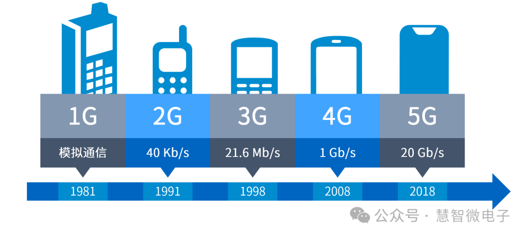 20世纪70年代至80年代,射频无线通信系统逐步迈向全球化阶段,涌现出一系列标准化、兼容化的1G通信系统。到了1991年,蜂窝网络迎来重大升级,全球较为统一的2G标准GSM(Global System for Mobile Communications,全球移动通信系统)应运而生。GSM标准以其高效的频谱利用率、高质量的语音和数据传输能力,以及低成本的设备服务等优势,赢得了全球众多国家和地区的广泛支持和采用,成为当时最流行的2G系统。基于GSM标准的手机实现了全球漫游,让人们能够无障碍地与全球伙伴保持联系。尝到了全球射频无线标准统一的甜头后,全球各国和地区在蜂窝通信协议的发展上保持了紧密的合作与步调一致。大约每10年,蜂窝通信协议就会迎来一次重大演进:2001年左右诞生了3G,2011年左右迎来了4G,而到了2019年左右,5G技术应运而生。随着通信协议的不断进步,通信速率也在持续提升,但全球各国和地区始终保持着一致的发展步伐。经过近50年的蓬勃发展,蜂窝网络的通信速率实现了飞跃式提升。在5G蜂窝网络中,无线通信已经可以实现20Gb/s以上的峰值速率。