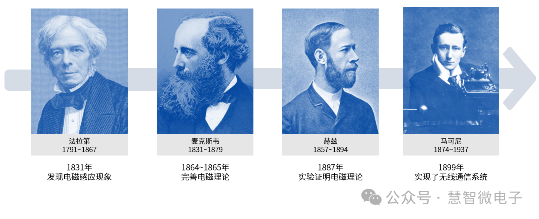 如果说有线通信是人类对于网速无限追求所绘就的鸿篇巨制,那么无线通信就是人类挣脱有线束缚的灵动之舞。无论有线通信的速率如何日新月异,它始终无法摆脱一个根本性的局限:需要物理介质进行传输。这意味着,人类必须先铺设好“有线”的网络,才能实现通信。这无疑大大限制了人类的自由活动空间。正是人类对通信“自由”的不懈追求,催生了无线通信技术的迅猛发展。1831年,英国科学家法拉第首次揭示了电磁感应现象,这一重大发现不仅为电磁理论的发展奠定了坚实基础,更为无线通信技术的崛起埋下了伏笔。1964年,麦克斯韦完善了电磁理论。1887年,德国科学家赫兹通过严谨的实验,证实了电磁波的真实存在。紧接着,1899马可尼也实现了无线电报的传输,这些里程碑式的成就共同标志着无线通信技术的正式诞生。