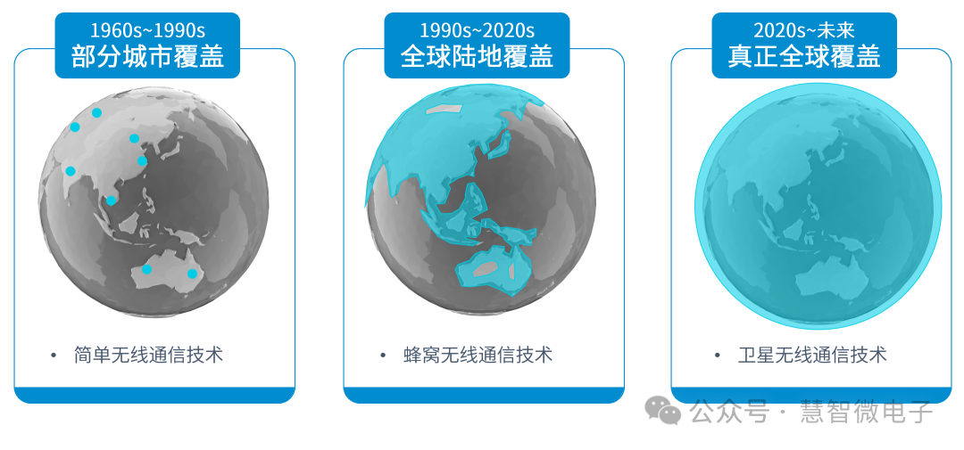 蜂窝网络虽已带来近乎全球的无线互联体验,但其运行基础仍依赖于几公里范围内的有线通信基站部署。这意味着,蜂窝网络主要覆盖城市、乡村等人口密集区域,而对于全球广袤的沙漠(占比约10%)和浩瀚的海洋(占比约71%),蜂窝网络则力不从心。这些区域虽人口稀少,但对通信的需求却尤为迫切。人类要探索未知,拓展边界,就必须掌握在这些区域的通信能力。而预先铺设有线电缆显然不切实际,因此,无线远距离通信成为了这些区域的唯一可行方案。在这些应用场景中,卫星通信成为实现全球直连的关键技术。卫星通信是一种利用卫星进行信息传输的技术,自1957年苏联成功发射第一颗人造卫星以来,便开启了人类卫星时代的新篇章。1962年,AT&T公司发射的卫星首次横跨大西洋,实现了大洋两岸的电话和电视转播,这标志着商用卫星通信技术的正式诞生。此后,卫星通信技术迅猛发展,被广泛应用于电视转播、电话通信、电报传输、传真服务等多种通信业务领域。根据卫星在轨高度的不同,卫星移动通信可分为GEO(静止轨道)卫星系统、MEO(中轨道)卫星系统和LEO(低轨道)卫星系统三大类。